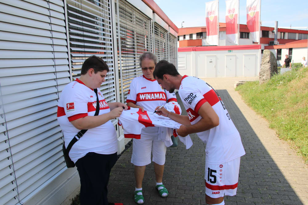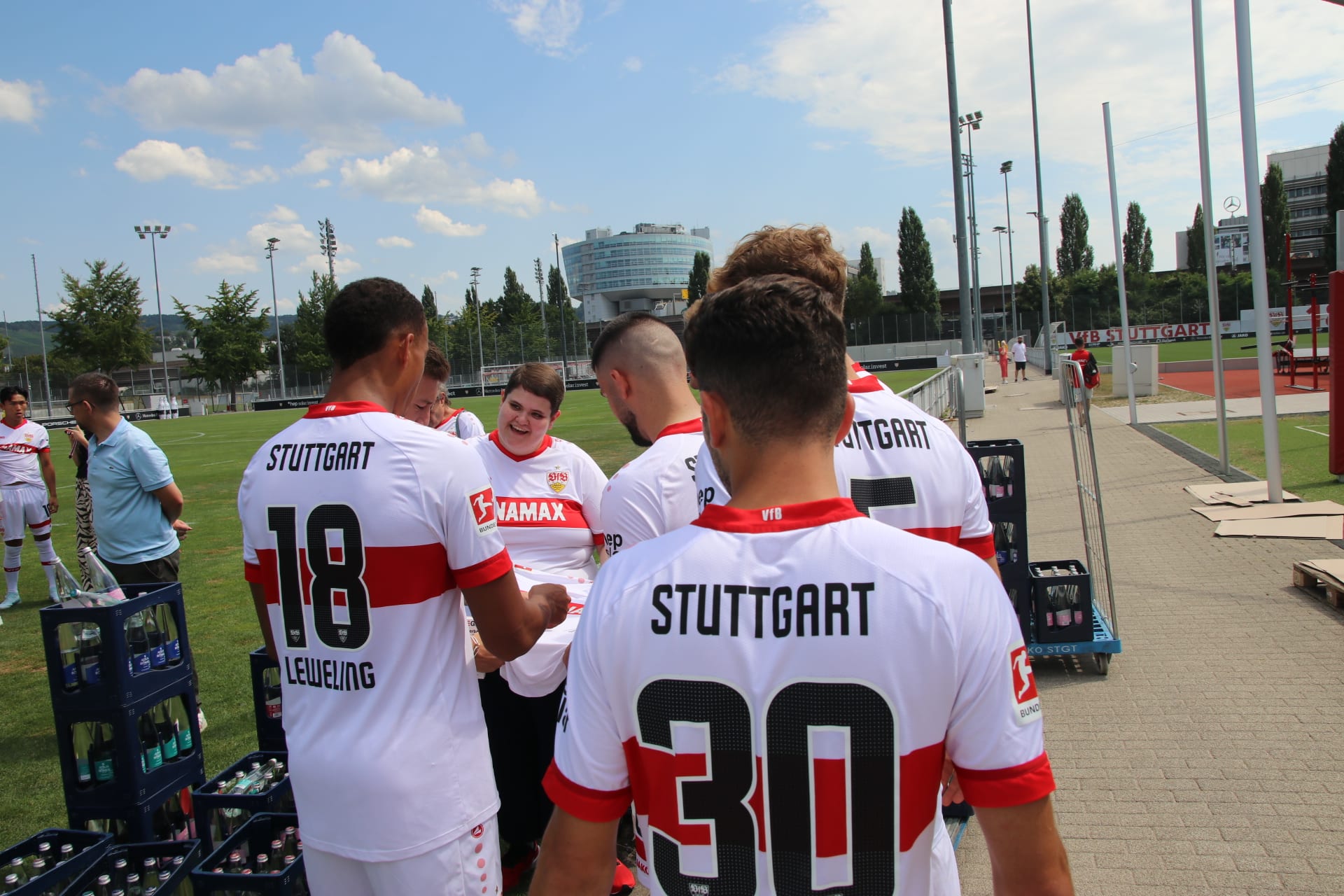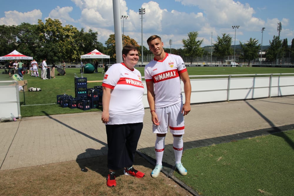Als Teil ihres Gewinns durfte Jasmin den ganzen Tag beim VfB verbringen und einen exklusiven Blick hinter die Kulissen des Vereins werfen. Zusammen mit ihrer Mutter, die sie an diesem besonderen Tag begleitete, erlebte sie hautnah, wie das Mannschaftsfoto entsteht. Neben dem unvergesslichen Moment auf dem Foto, hatten die beiden auch die Gelegenheit, ihre neuen VfB-Trikots von den Jungs aus Cannstatt signieren zu lassen.