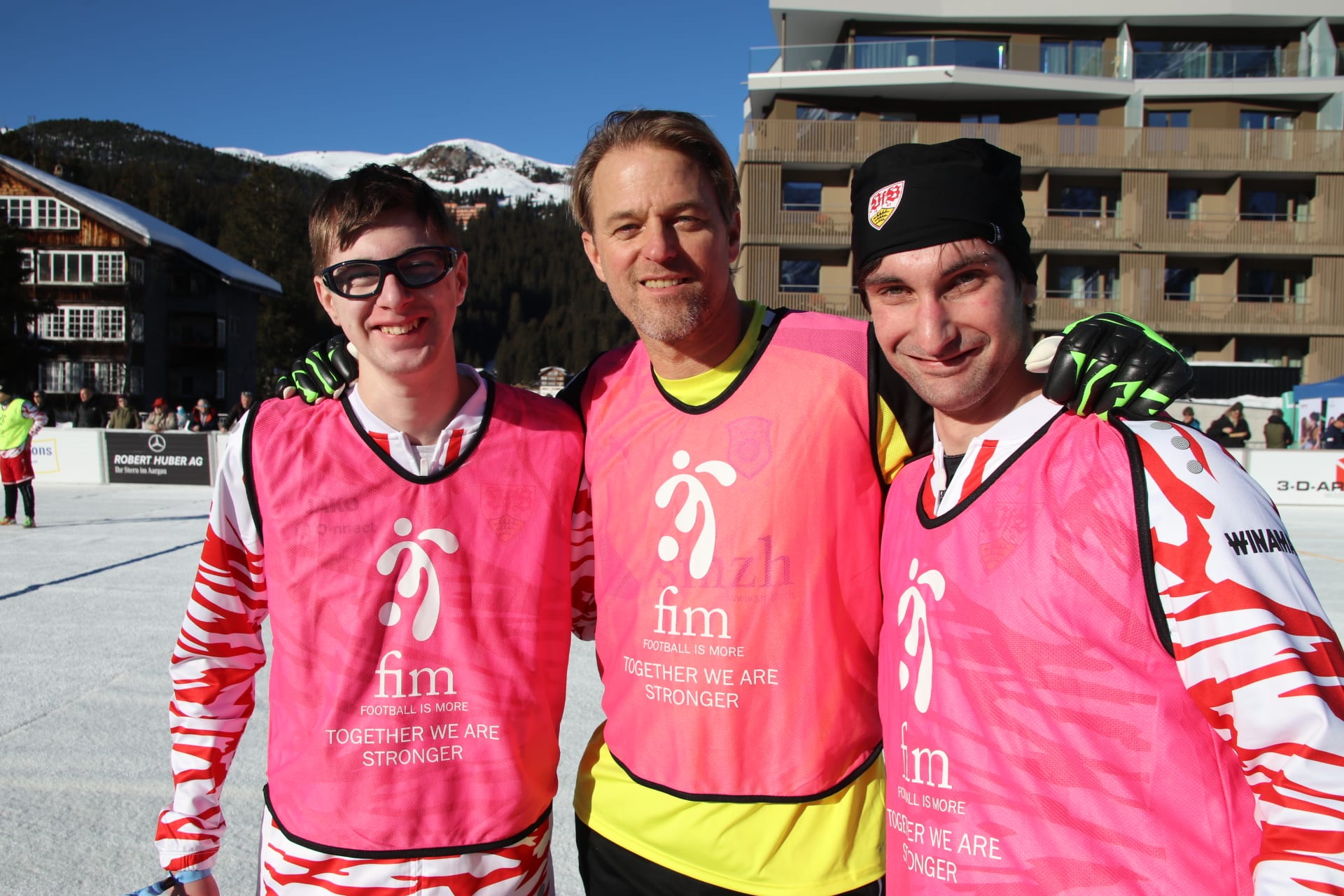 Die VfB-Stiftung setzt sich mit ihrem Projekt für inklusive Fußballförderung PFIFF aktiv für eine gelebte Inklusion im Sport ein. Ziel ist es, Menschen mit einer Beeinträchtigung ein regelmäßiges Fußballtraining in einem regulären Verein zu ermöglichen und die dafür erforderlichen Trainer zu schulen. An insgesamt sechs Standorten in Baden-Württemberg ist dies mit Hilfe der VfB-Stiftung bereits der Fall. Dabei wird sie von Partnern und Förderern wie dem Württembergischen Fußballverband, der Stiftung Allianz für Kinder und der Holtzbrinck Stiftung unterstützt. Seit einigen Jahren ist die VfB-Stiftung Partner der Football is more Foundation FIM mit Sitz in Liechtenstein. Dank des Engagements der FIM ist eine Teilnahme ihrer Partner bei speziellen Events möglich. So konnte vergangene Woche ein Team des VfB beim 13. Arosa IceSnowFootball Turnier in der Schweiz teilnehmen.