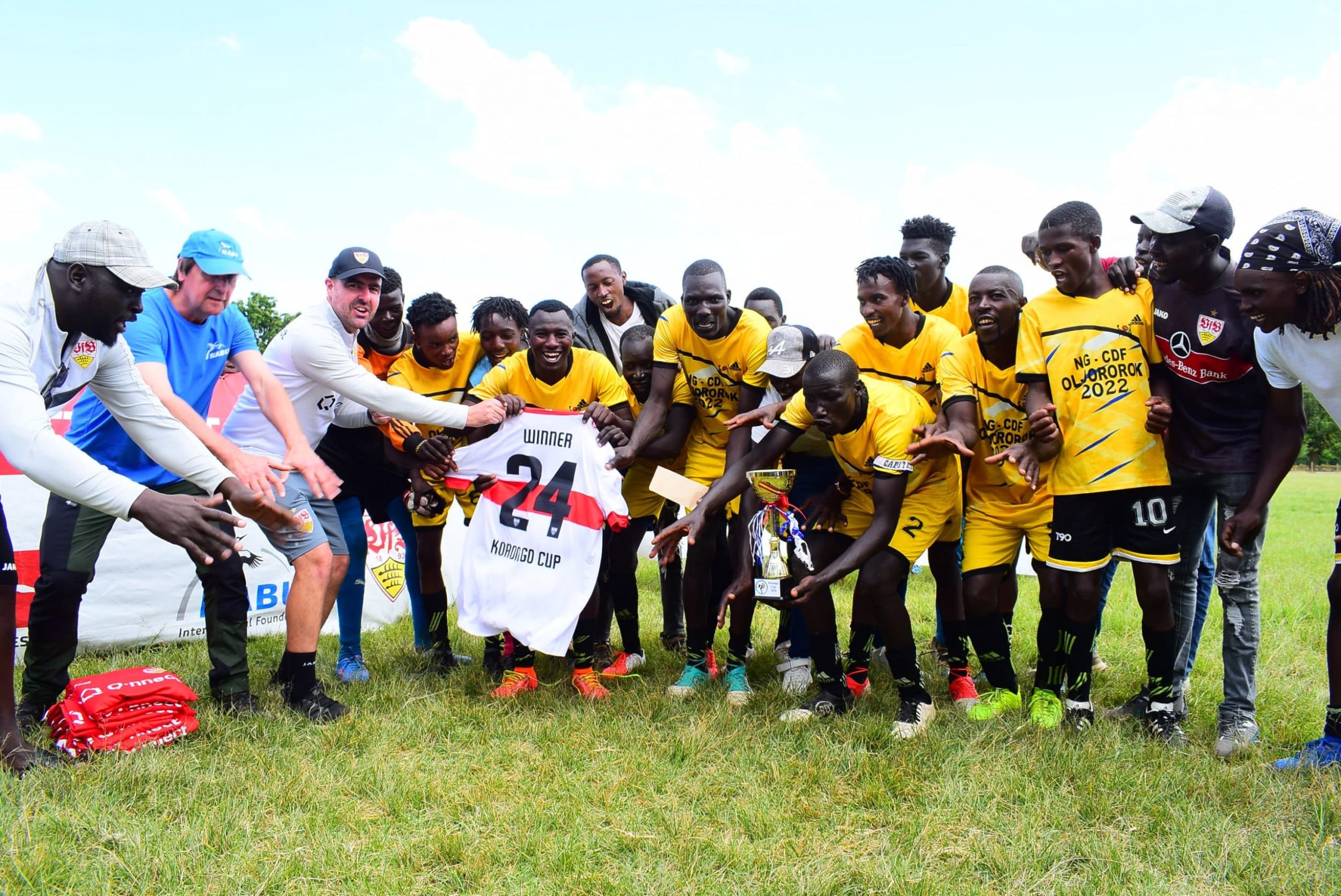Den Höhepunkt der Reise markierte der zweitägige „Korongo-Cup“ im Ol’Joro Orok Stadium, der wieder ganz im Zeichen des bedrohten Grauen Kronenkranichs (Korongo = Kranich) stand. Neun Teams aus den östlichen und westlichen Gebieten des Sees sowie der Gastgeber Ol’Jorok lieferten sich spannende Spiele. Am Ende triumphierte der Korongo FC und wurde mit T-Shirts der VfB-Stiftung belohnt. Alle teilnehmenden Mannschaften erhielten zudem JAKO-Bälle.