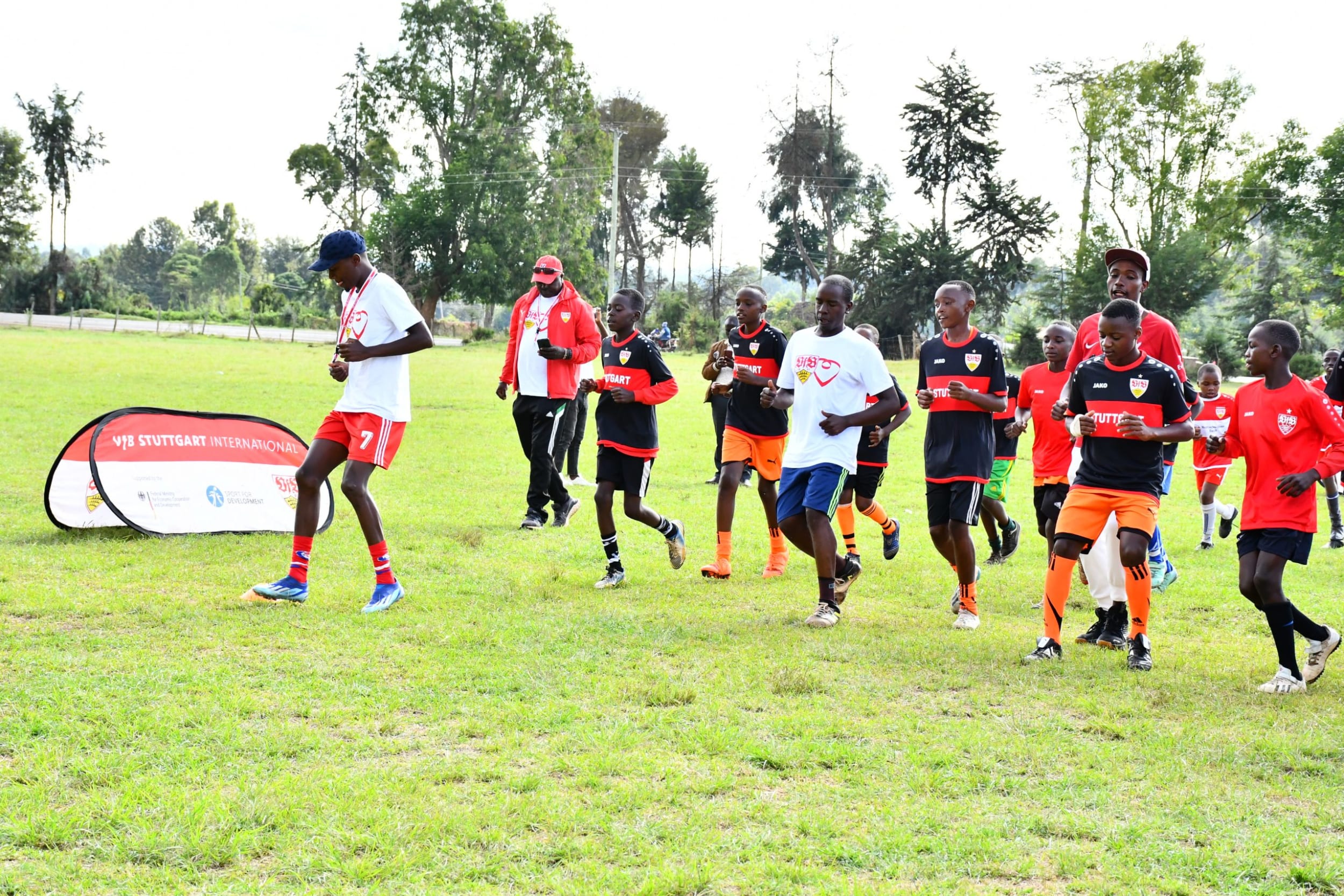 Eine Delegation aus Cannstatt machte sich auf den Weg nach Ostafrika, um in Zusammenarbeit mit der Wohltätigkeitsorganisation „Kickoff to Hope“ in Nairobi Sport-Entwicklungsarbeit zu leisten und um den Kranichschützern von Cranes Conservation Volunteers (CCV) am Lake Ol’Bolossat dabei zu helfen, ihr Konzept von Sport & Naturschutz umzusetzen. So wurde zum dritten Mal der „Family Fun Day“ ausgerichtet, bei dem auch diesmal wieder die kenianische Fußballlegende und Initiator von „Kickoff to Hope“, Musa Otieno, mitwirkte. Andrew Oloo, Instruktur des eigens für Entwicklungsländer konzipierten „Sports4Development“-Ansatzes der GIZ (Gesellschaft für internationale Zusammenarbeit) sowie zwei Trainer der VfB-Fußballschule, Manuel Bierig und Luca Finkbeiner, leiteten auf einem von der Regierung zur Verfügung gestellten Kunstrasenplatz eine Trainingseinheit für insgesamt 24 Kinder eines „Kickoff to Hope“-U17-Teams. Am Lake Ol’Bolossat fand außerdem ein reger Austausch mit zehn Trainern des Wohltätigkeitsprojekts statt. CCV nutzte die Gelegenheit, den Teilnehmenden Naturschutz und insbesondere den Kranichschutz nahe zu bringen. Außerdem wurde eine naturkundliche Exkursion an den See durchgeführt, um die Notwendigkeit von Feuchtgebietsschutz zu erläutern. Vor und nach der Trainingseinheit spendete der VfB Mahlzeiten und Getränke für 60 Kinder.
