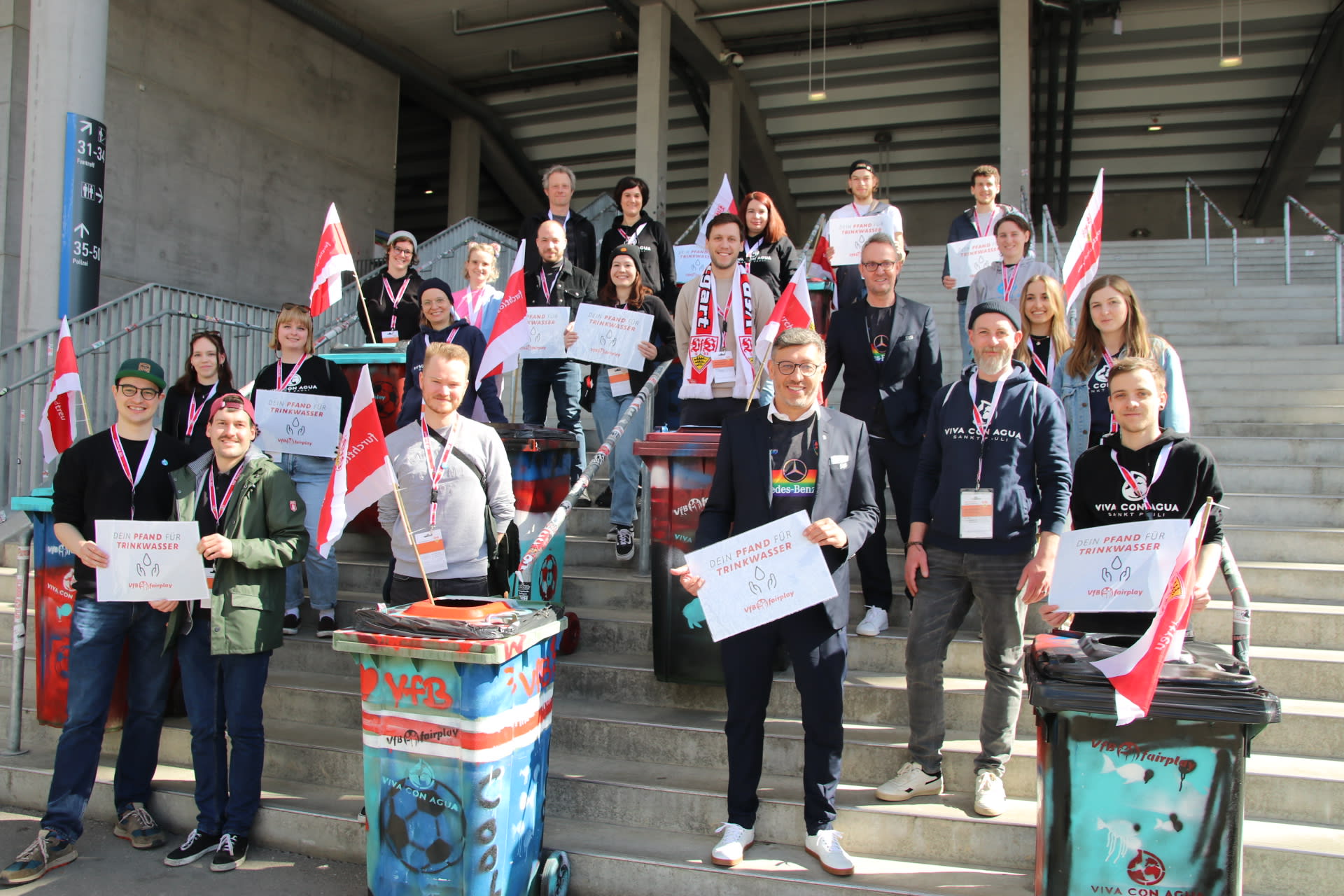Im Jahr 2023 wurde eine Initiative gestartet, um sich für weltweite Trinkwasserprojekte einzusetzen: die Pfandbecheraktion der VfB-Stiftung. Die Heimspiel-Besucher haben seither die Möglichkeit, ihre Pfandbecher zu spenden, indem sie diese in bunte Sammeltonnen im gesamten Stadion werfen. Der Erlös dieser Aktion unterstützt weltweite Projekte für sauberes Trinkwasser.